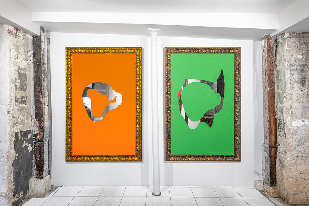 《尊重》Il Rispetto,2016年,镜子、彩色木材和镀金框架,每件250 x 150 厘米,摄影:Philippe Servent。展览 “尊重 - 艺术,教育 & 政治”,VNH 画廊,巴黎,2016年