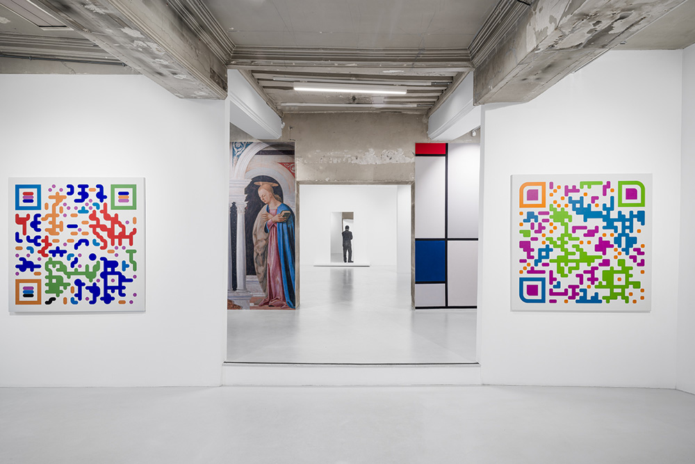 《二维码“说” - 创造的公式系列对谈》(QR Code Possession The Formula of creation meetings)2023,布面油画,摄影:董林