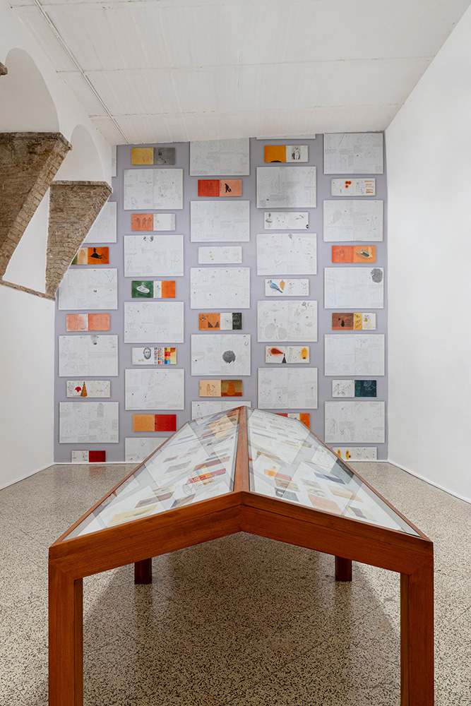 “图纸和版画”,2021年,常青画廊展览现场,罗马瑞吉酒店。摄影:Giovanni De Angelis