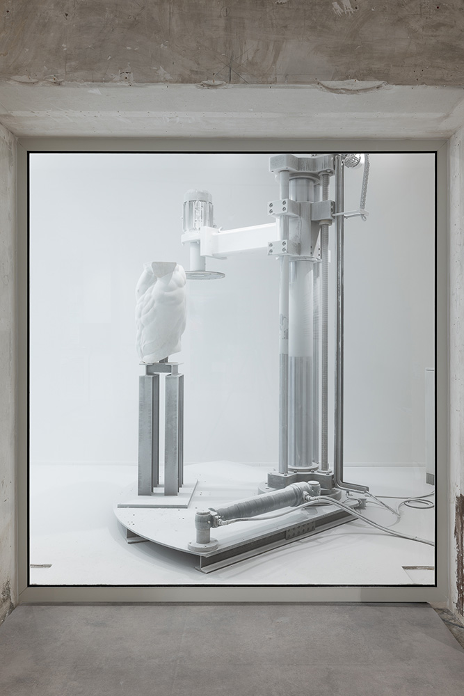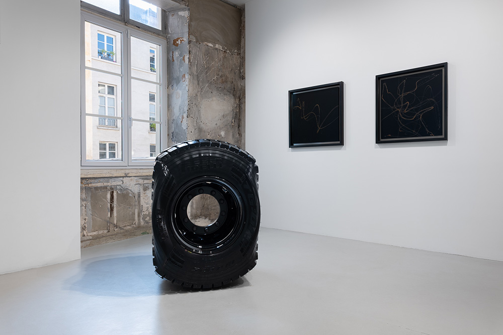 在本次展览呈现的作品中,物质经受着贯穿与考验自身的各种力量。大理石、石材、钢铁与油料并非象征符号,而是承载真实张力的媒介,处于一种临界的平衡状态。萨索里诺的创作并非呈现断裂本身,而是探究断裂发生前后的状态:世界在压力之下依然存续的不稳定临界地带。