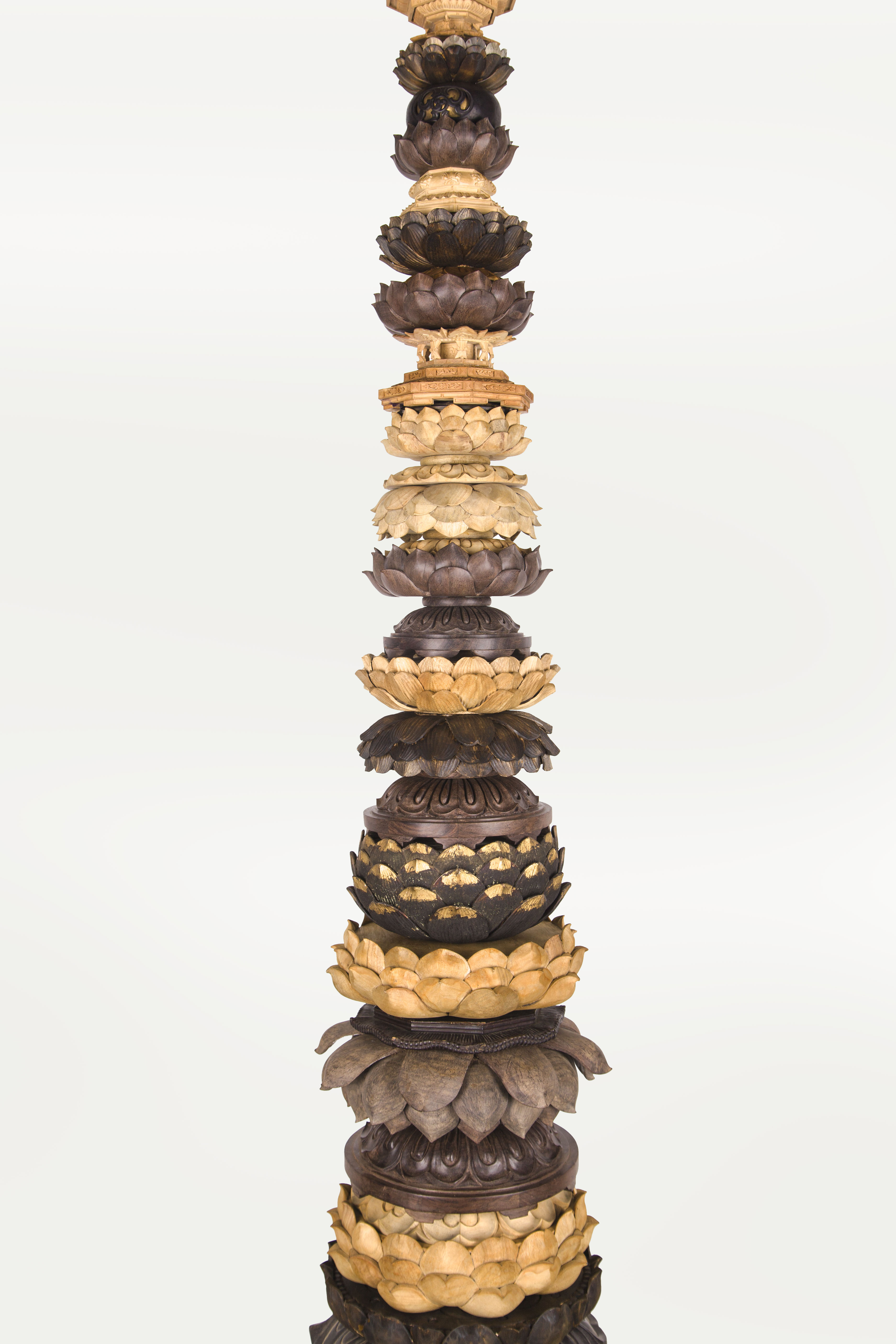 《浮屠3》(局部)Pagoda III,2014-2015,木材、不锈钢,250.5×55×55厘米,©️艺术家工作室