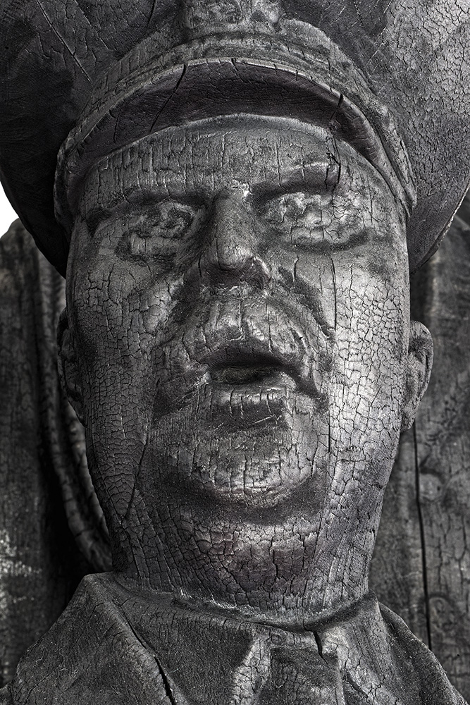 《黑眼睛》,2017,27件烧焦木雕作品,180 × 60 × 40 厘米。©阿岱尔·阿德斯梅,巴黎 ADAGP 2023
