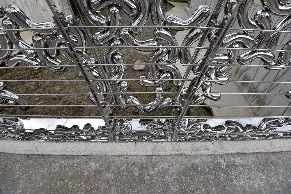 《水骨(随机合唱交响曲)》Waterbones (Stochastic Choral Sinphony),2018,不锈钢元素,特定场地尺寸。摄影:Ela Bialkowska