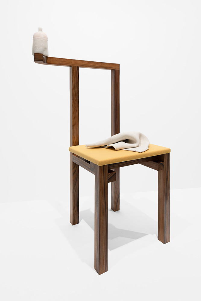 《睫毛》2025年,桑托斯玫瑰木、雪花石膏、陶瓷、织物,107 × 55 × 40 厘米。摄影:Hafid Lhachmi © ADAGP Paris。
