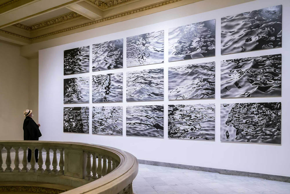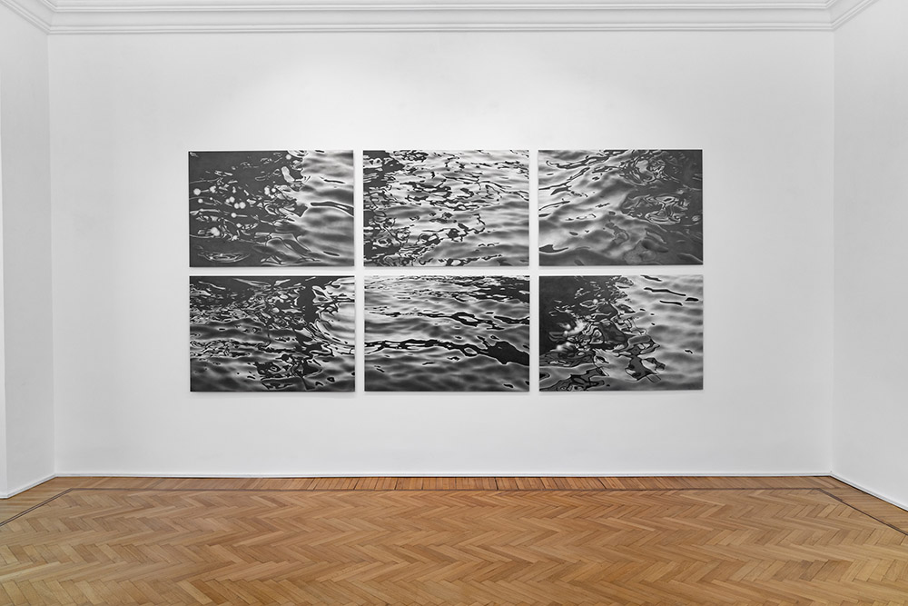 《水面花纹》A fior d’acqua,2014,铝面纸上石墨,每幅 100 x 142 厘米,每幅 39.3 x 56 英寸。摄影:Giovanni De Angelis