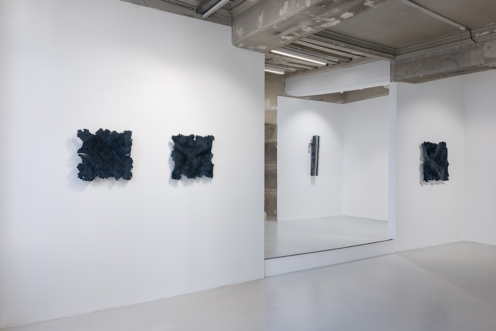 在本次展览呈现的作品中,物质经受着贯穿与考验自身的各种力量。大理石、石材、钢铁与油料并非象征符号,而是承载真实张力的媒介,处于一种临界的平衡状态。萨索里诺的创作并非呈现断裂本身,而是探究断裂发生前后的状态:世界在压力之下依然存续的不稳定临界地带。