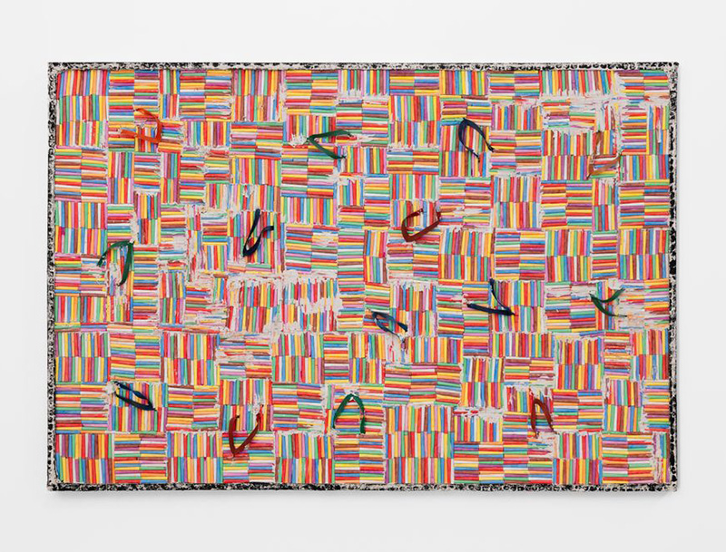 帕斯卡尔·马尔蒂那·塔尤《人字拖粉笔 D》,Flip-flop Chalks D,2025,粉笔、颜料、塑料,126 × 185 cm. 版权所有:© ADAGP, Paris. 摄影:Hafid Lhachmi